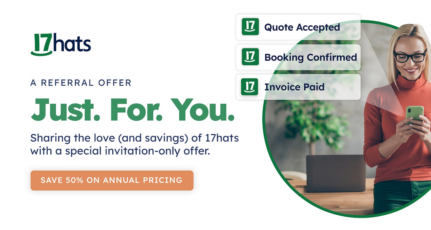 And only because you’ve been referred by me, a 17hats member, can you get this special pricing. But be sure to use this referral code: hcnnxsfkhc to get this invitation-only pricing or just click on the link below.