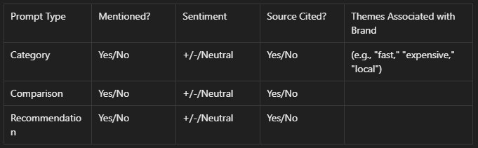 Today we measure your LCRS (LLM Consistency and Recommendation Share). Because AI models are probabilistic (meaning they don’t give the same answer every time), you must run these prompts multiple times over 2–3 days to account for “temporal variability.”